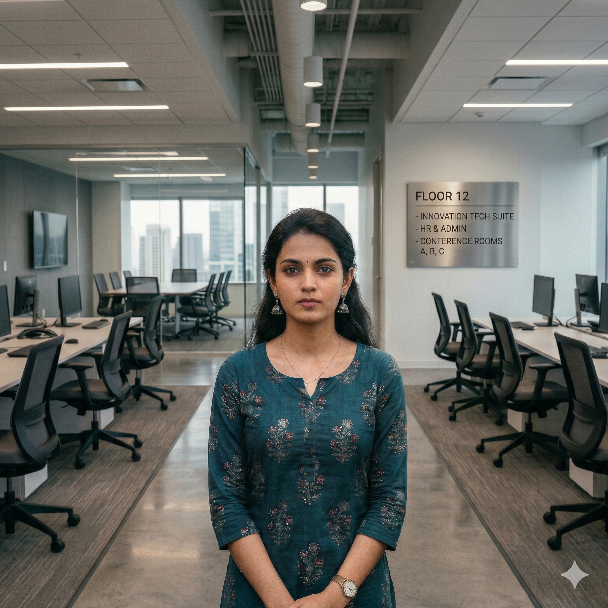 - Glasses worn in the photo — not permitted under current Indian passport rules. Remove all eyewear including prescription glasses.